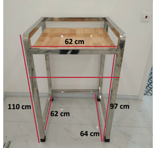 Kích thước của kệ máy giặt máy sấy 2 tầng inox Cao 110 cm – Rộng 70 cm – Sâu 64 cm, phù hợp với nhiều loại máy giặt và máy sấy khác nhau. Người tiêu dùng có thể chọn lựa kích thước phù hợp với không gian của mình, từ những căn hộ nhỏ cho đến những ngôi nhà lớn hơn. Kích thước lọt lòng của kệ máy giặt là Cao 97 cm – Rộng 62 cm – Sâu 64 cm.