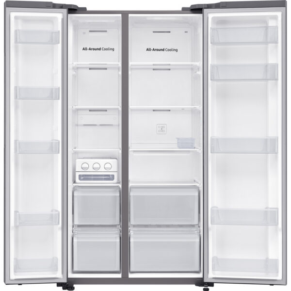 Tủ lạnh Samsung Inverter 680 Lít SBS RS62R5001M9 gây ấn tượng mạnh với vẻ ngoài sang trọng với gam màu bạc sang trọng, trang nhã. Tủ lạnh Samsung 2 cánh còn mang những đường nét thiết kế phẳng, góc cạnh cùng bề mặt thép không gỉ cao cấp, nâng tầm đẳng cấp cho toàn bộ gian bếp. Đây là lựa chọn hoàn hảo cho mọi phong cách thiết kế nội thất theo hướng hiện đại.